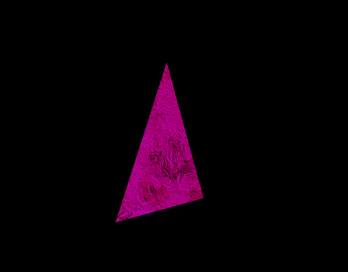 핑크색 삼각형이 돌아가며, 정면을 보지 않을수록 점점 어두워지는 모델이 표현됩니다.