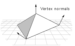 면법선 벡터와 정점 법선 벡터 메쉬의 각면에는, 수직의 법선 벡터가 있다. 법선 벡터의 방향은, 정점이 정의되고 있는 순서와 좌표계가 왼손 좌표계나 오른손 좌표계 등에 의해서 정해진다. 면의 법선 벡터는 면의 앞면으로부터 멀어질 방향으로 향한다. Microsoft®Direct3D®에서는 앞쪽 면만 보인다. 앞면이란 각 정점이 시계방향 순서로 정의된 면이다. 앞면 이외의 면은 뒷면이다. Direct3D 에서는, 뒷면이 항상 렌더링 되는 것은 아니다. 이것을